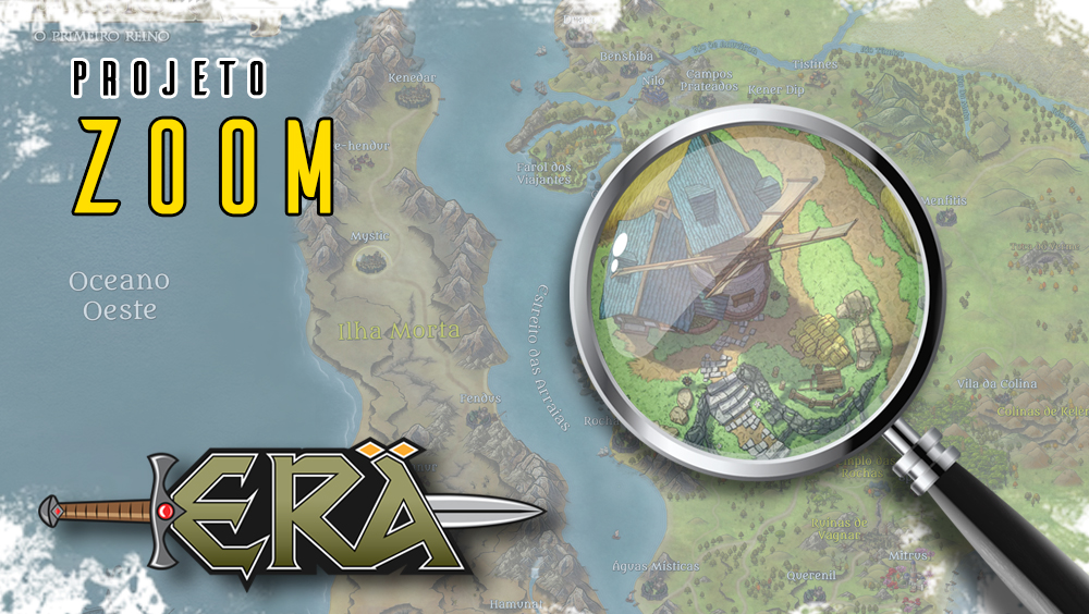 O mapa do cenário ERÄ oferece uma visão geral do mundo, destacando os principais pontos. O projeto "Zoom" tem como objetivo detalhar áreas que parecem vazias no mapa, revelando elementos como torres abandonadas, ruínas, pequenas vilas e outros locais que normalmente não aparecem no mapa geral, mas que ganham relevância durante as aventuras. Assinantes dos níveis Herói e Lendário podem participar deste projeto, contribuindo para enriquecer e expandir o cenário.