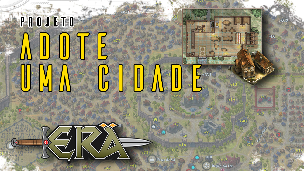 No "Adote uma Cidade", você e outros criadores vão dar vida às cidades do cenário ERÄ, criando detalhes que ainda não existem, tipo tavernas, moradores misteriosos, costumes locais e muito mais. É uma chance de fazer o cenário ficar vivo e super colaborativo para as mesas de RPG. Quem for assinante Lendário vira regente da cidade, cuidando do conteúdo e aprovando criações. Já os Heróis são os parceiros que ajudam a enriquecer os detalhes junto com os regentes. É você ajudando a construir o universo ERÄ de dentro pra fora!